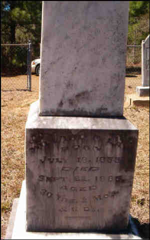 • Tombstone. Photo taken by Ray Faircloth - Feb 2009 Millard married Amanda Lee, daughter of James B Lee and Minerva Swinney. (Amanda Lee was born on 30 May 1866 in TX, died 7/27/188722 Sep 1885 and was buried in James Lee Cemetery, Magnolia Springs, Jasper, TX.) |
