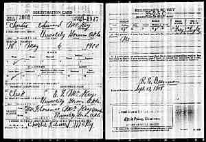 • WWI Draft Registration, 1918, Elmore City, Garvin, OK. Name: Charlie Edward Mckey County: Garvin State: Oklahoma Birth Date: 6 May 1900 Race: White FHL Roll Number: 1851776 Occupation: Clerk for E T McKey Date: 9/12/1918