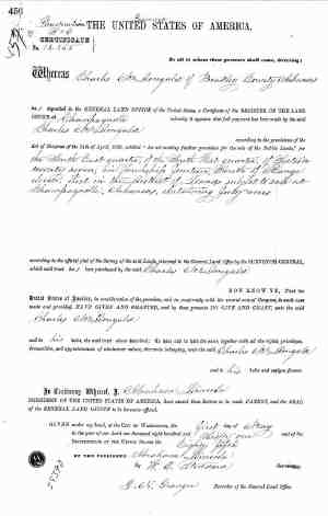 • Land, 1861, AR. Name: Charles Mcdougald Issue Date: 1 May 1861 State of Record: Arkansas Acres: 40 Accession Number: AR2320__.456 Metes and Bounds: No Land Office: Champagnolle Canceled: No US Reservations: No Mineral Reservations: No Authority: April 24, 1820: Sale-Cash Entry (3 Stat. 566) Document Number: 13865 Legal Land Description: Section Twp Range Meridian Counties 27 14-S 11-W 5th PM Bradley