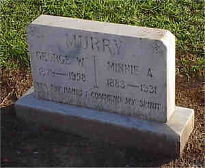 Minnie married George Washington Murry, son of Solomon W Murry and Huber Kelley, on 16 Jan 1902 in Williana, Grant Parish, LA. (George Washington Murry was born on 28 Aug 1879 in LA, died on 20 Nov 1958 in Huey P Long Hospital, Pineville, Rapides, LA and was buried in Liberty Chapel Cemetery, Williana, Grant Parish , LA.)
