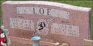 Lois married Prentiss Marbury Loe, son of Alvin Eugene Loe and N Annie Blewer, on 12 Jun 1936 in Dry Prong, Grant, LA. (Prentiss Marbury Loe was born on 28 Apr 1908 in Friendship, Bienville Parish, LA, died on 22 Aug 1984 in Winnfield, Winn Parish, LA and was buried in Liberty Chapel Cemetery, Williana, Grant Parish , LA.)